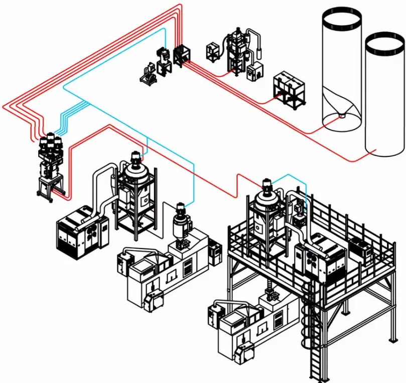 El secado es una etapa crítica en el proceso del sistema de preformas de PET, ya que es fundamental eliminar la humedad de la materia prima y garantizar que la temperatura de secado sea adecuada. El secador deshumidificador de XIECHENG proporciona aire seco con un punto de rocío de -40 °C o inferior, permitiendo un monitoreo constante de varios parámetros y del punto de rocío.